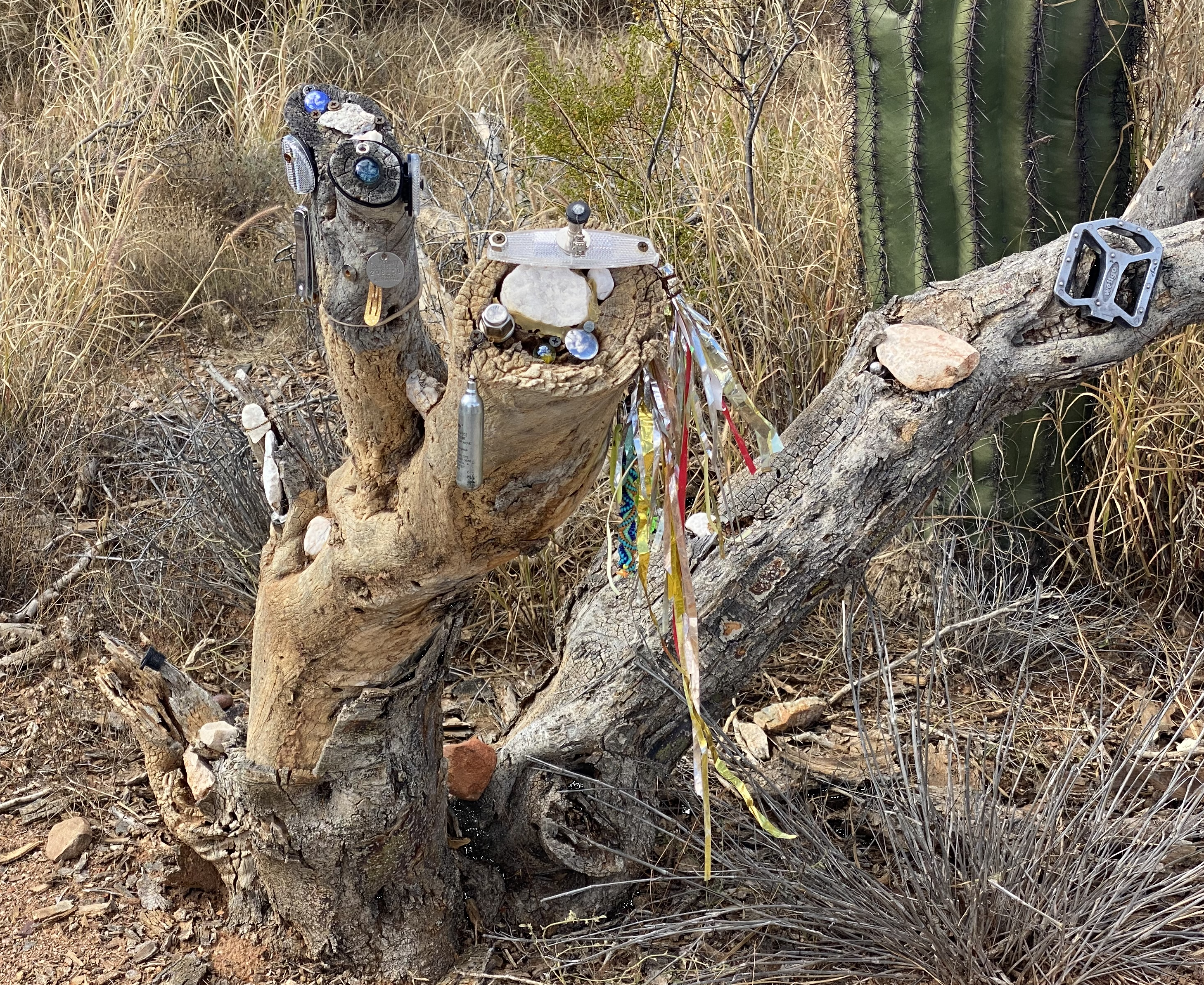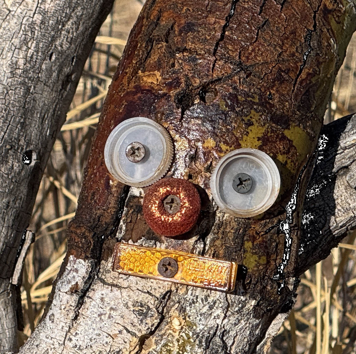 Then, the “tree spirit” got a nose. The one shown was temporary. The current nose is the bottle top off of a small Fireball bottle.