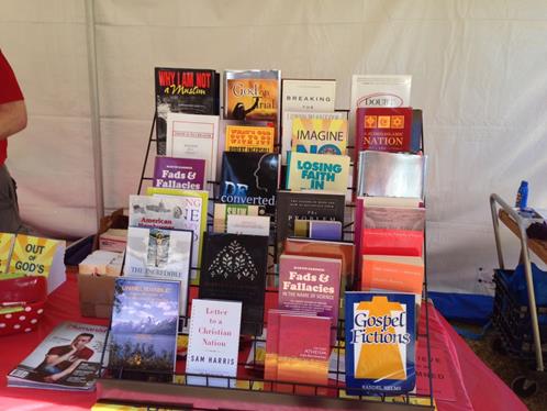 Before the opening ceremony on Saturday, an older gentleman stopped by long enough to determine that there were quite a few books on Atheism on display. He spit out some barely audible insults and quickly trotted away. He didn’t give anyone a chance to address his obvious concerns.