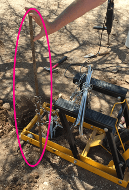 Yesterday, I dug down about a foot. Then I took a pipe and drove it in the ground around the stake. Of course, the pipe was difficult to remove and the stake was still stuck fast. I poured water in the hole and quit for the day. Today, I went out with more water, a bigger shovel, a small portable jack hammer, and my trusty steel pipe. I worked on it for about an hour and it didn’t budge one little bit. But then I got an idea…