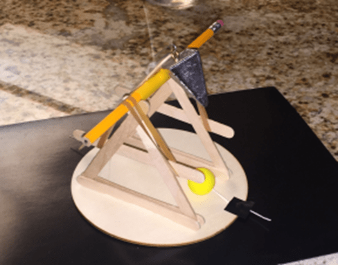 Each camper will build two catapults. One will be a Trebuchet and the other will be a Mangonel. When someone pictures a “catapult” they more than likely picture the Mangonel. They used twisted rope to store the energy which is delivered to the missile causing it to fly. The Trebuchet is a bit more elegant. It uses a falling a weight to store and impart the energy to the missile.