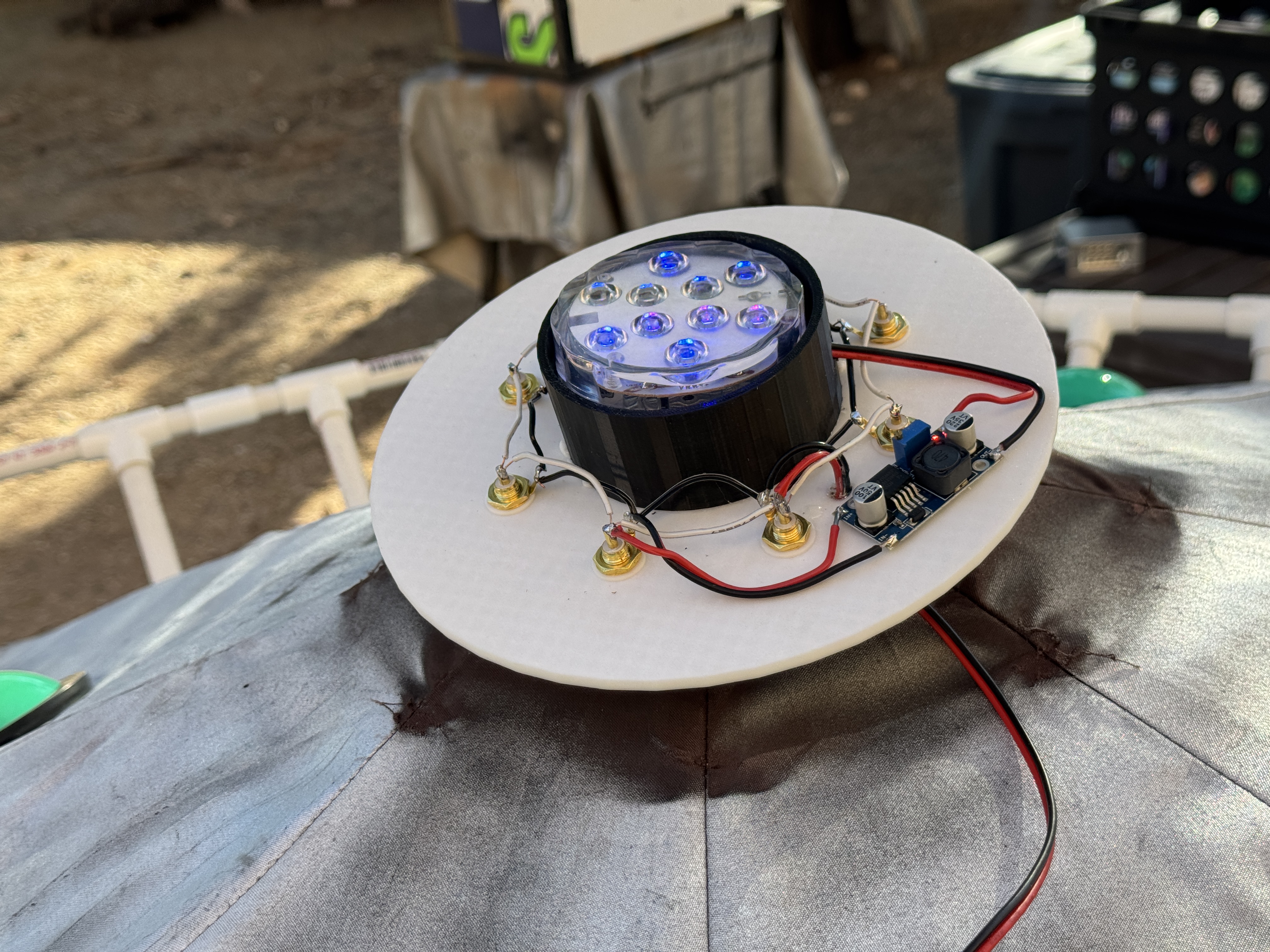 Below is the prototype “cup” mounted to the top of my UFO lawn ornament.