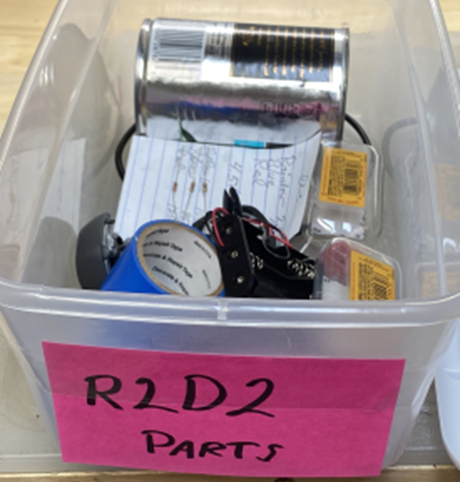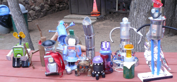 I love CampQuestAZ. It gives me the chance to share the “maker” experience with the young campers. My R2D2 was only an example. They had to come up with their own design made from the parts I brought to camp. Check out the imaginative and creative robots they built!