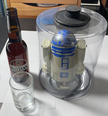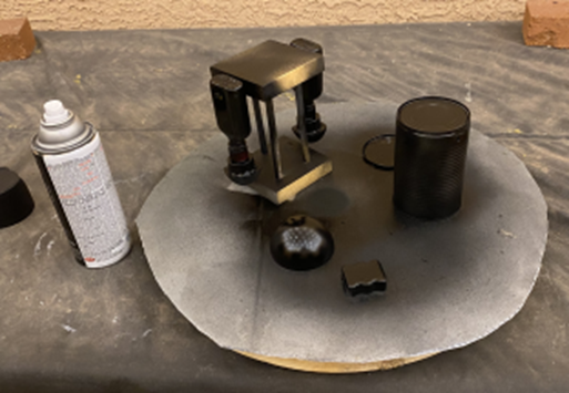 Unlike their effort, I have a plan and the experience of building 3 previous R2D2s. So during my build today, I skipped around a bit. After collecting all of the necessary materials and tools, I cleaned and painted the can, the dome, the tiny liquor bottles, the air fresheners, and the dental floss container. All of the parts require a multiple coats. The base coat is black.
