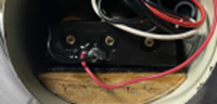 wiring this little robot toy is terribly confusing, and it shouldn’t be. There are only a couple of components and a few connections. Even though this was my fourth one, I had to get out my pencil and paper and turn down the radio so that I could concentrate. I’ll include the diagram here but it’s hard to follow. The secret appears to be that the ground connection is the one that is switched. In my experience, it is usually the positive lead that is switched. In this case, the battery positive lead, the socket positive lead, and the LED positive lead are solidly connected without an interrupting switch. The pushbutton switch on the back of R2 interrupts the ground to the LEDs. One end is connected to the LEDs and other end is connected to the socket negative lead. On my socket there was a connection without a wire, a bare connection. I checked with an Ohmmeter and found that when the plug is not in the socket this bare connection and the ground connection are shorted. Once the plug is inserted, the bare connection and the socket ground connection are disconnected, and the ground provided to the LEDs is from the external power supply.